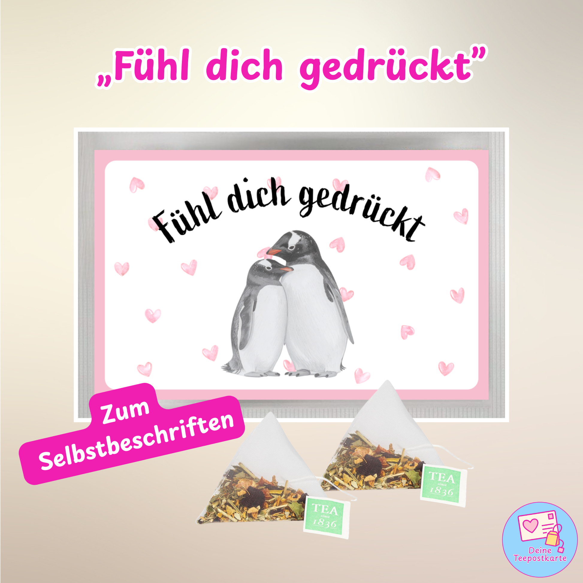 Teepostkarte „Fühl dich gedrückt" (zum Selbstbeschriften)